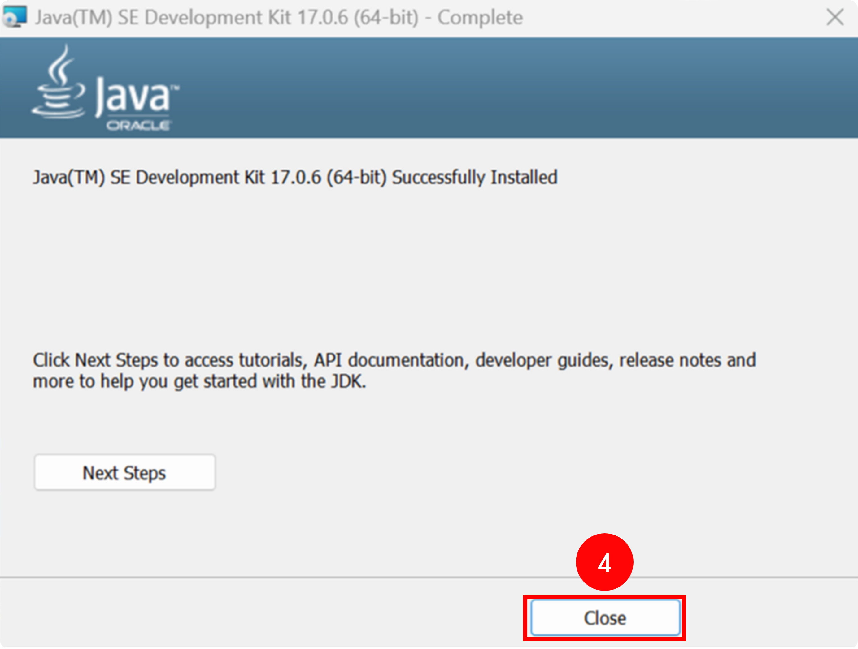 Successfully Installed 메시지가 나오면 Java SE 17 설치에 성공했습니다 :)