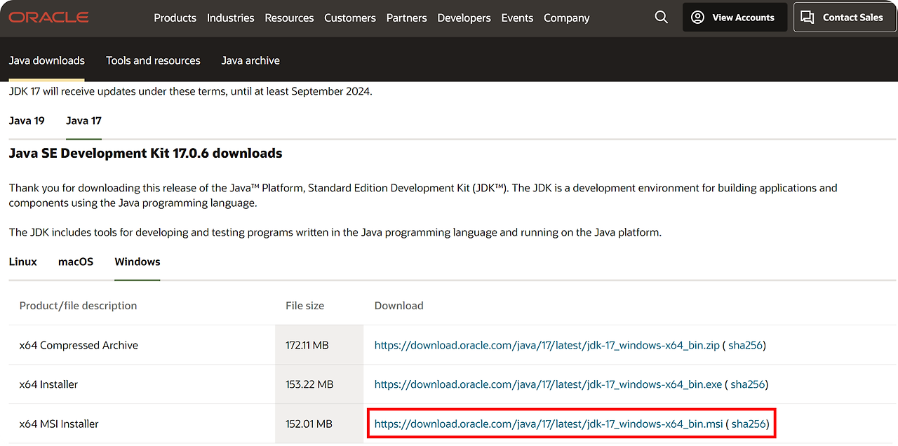x64 MSI Installer 설치 프로그램인 [msi] 확장자가 있는 파일(jdk-17_windows-x64_bin.msi)을 다운로드 합니다.